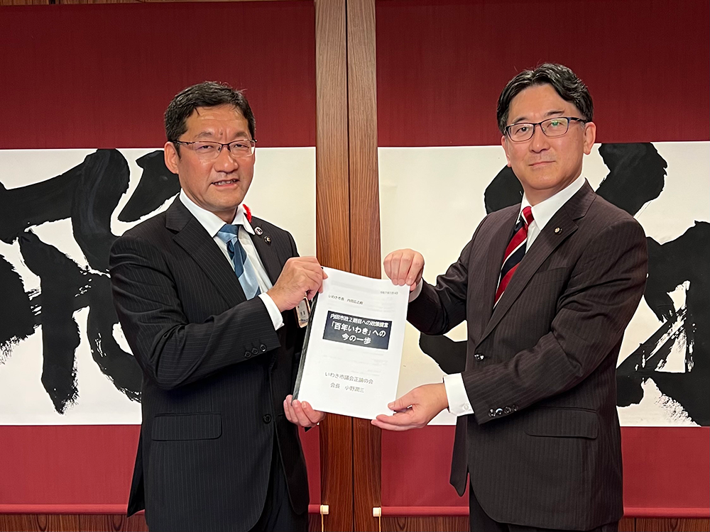 令和7年11月14日、内田広之市長に「内田市政2期目への政策提言『百年いわき』への今の一歩」を提出しました。